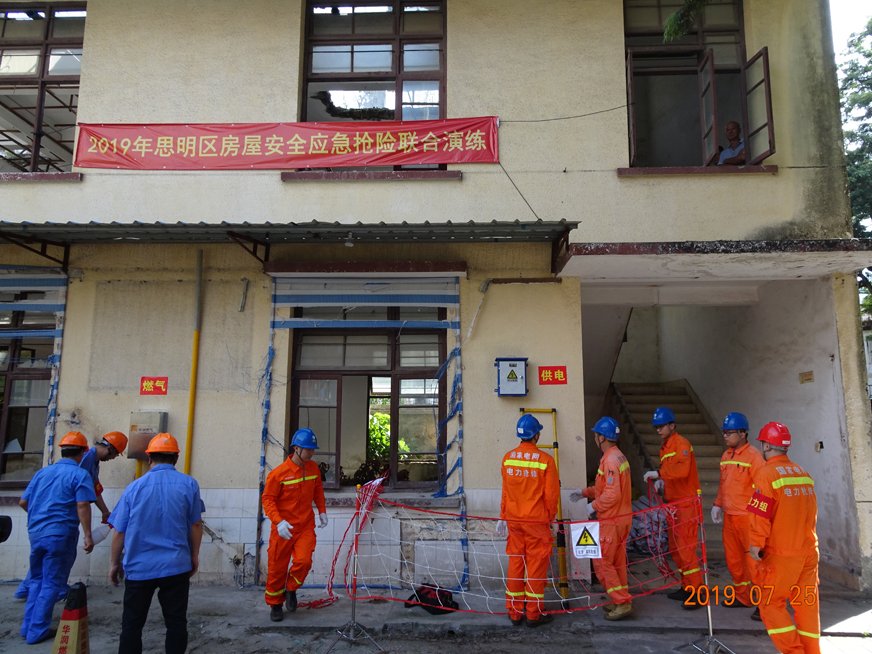 7月25日思明區(qū)建設(shè)管理局開展2019年思明區(qū)房屋安全應(yīng)急搶險聯(lián)合演練,模擬危舊房由于年久失修,造成鋼筋混凝土樓板及陽臺板的險情,危及房屋內(nèi)人員和公共安全。演練通過開展人員疏散與轉(zhuǎn)移,停水、停電與停氣,鋼筋混凝土樓板臨時加固和頂撐支護,鋼筋混凝土陽臺板頂撐支護等應(yīng)急搶險內(nèi)容,旨在提高應(yīng)對房屋安全突發(fā)性事件的應(yīng)急處置能力,加強思明區(qū)房屋應(yīng)急工作相關(guān)部門、隊伍人員之間的應(yīng)急響應(yīng)和協(xié)同能力,保證房屋安全應(yīng)急搶險工作高效有序進行。