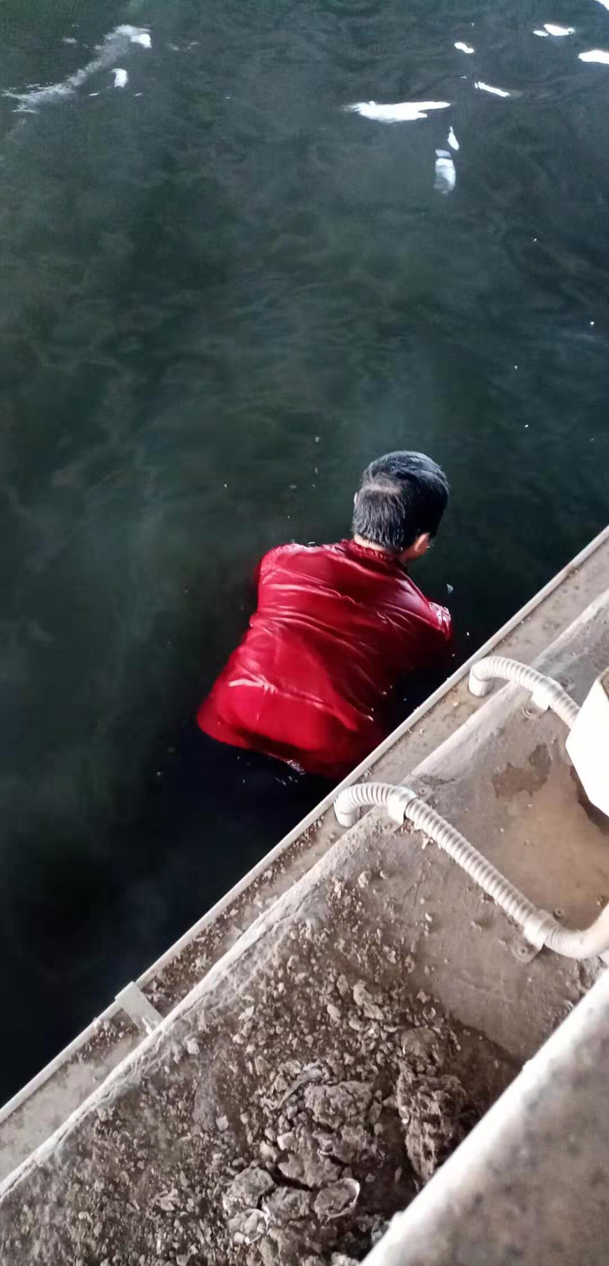 有人落水了!吳仁財(cái)同志一邊撥打110報(bào)警,一邊往事發(fā)地跑,完全不顧自己會(huì)不會(huì)游泳,也不知道水有多深就“撲通”一聲跳進(jìn)湖里,一把拽住落水女子的胳膊,可這位女子并不配合,反而加速往湖中央去,掙扎著不想回岸邊,由于吳仁財(cái)同志和落水女子雙手均沾滿泥巴,剛托起來(lái)的女子又掉入湖里,被退潮的水流沖走了30多米,情況非常危急。這時(shí),倆名晨練的年輕男子途徑橋下,吳仁財(cái)大聲呼救,倆名年輕男子跳入湖里一同加入救護(hù)行列,三人合力硬拽住女子托了起來(lái),用力向湖邊淺水區(qū)拖拽,救上岸邊。這時(shí),接到報(bào)警的120醫(yī)護(hù)人員趕到現(xiàn)場(chǎng)對(duì)女子進(jìn)行了急救。吳仁財(cái)則全身濕透,腿上的襪子被割破,雙腳劃傷,鮮血直流,在人群中悄然離開(kāi)現(xiàn)場(chǎng),趕赴值守崗位。