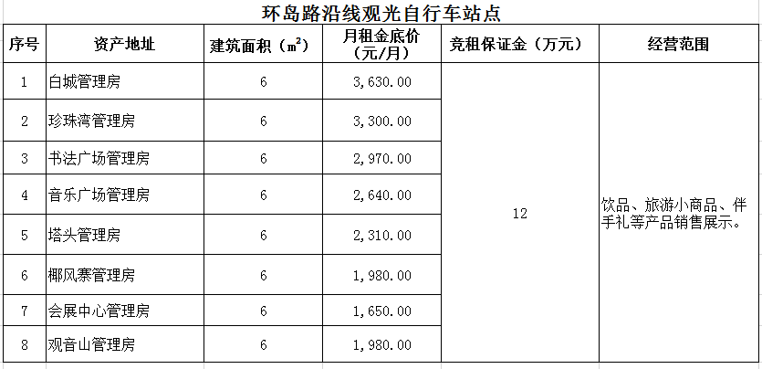 備注:意向承租人對上述情況應(yīng)有充分了解。詳細(xì)招租規(guī)則、合同、承諾函、報價單等招租文件于報名參加時領(lǐng)取。