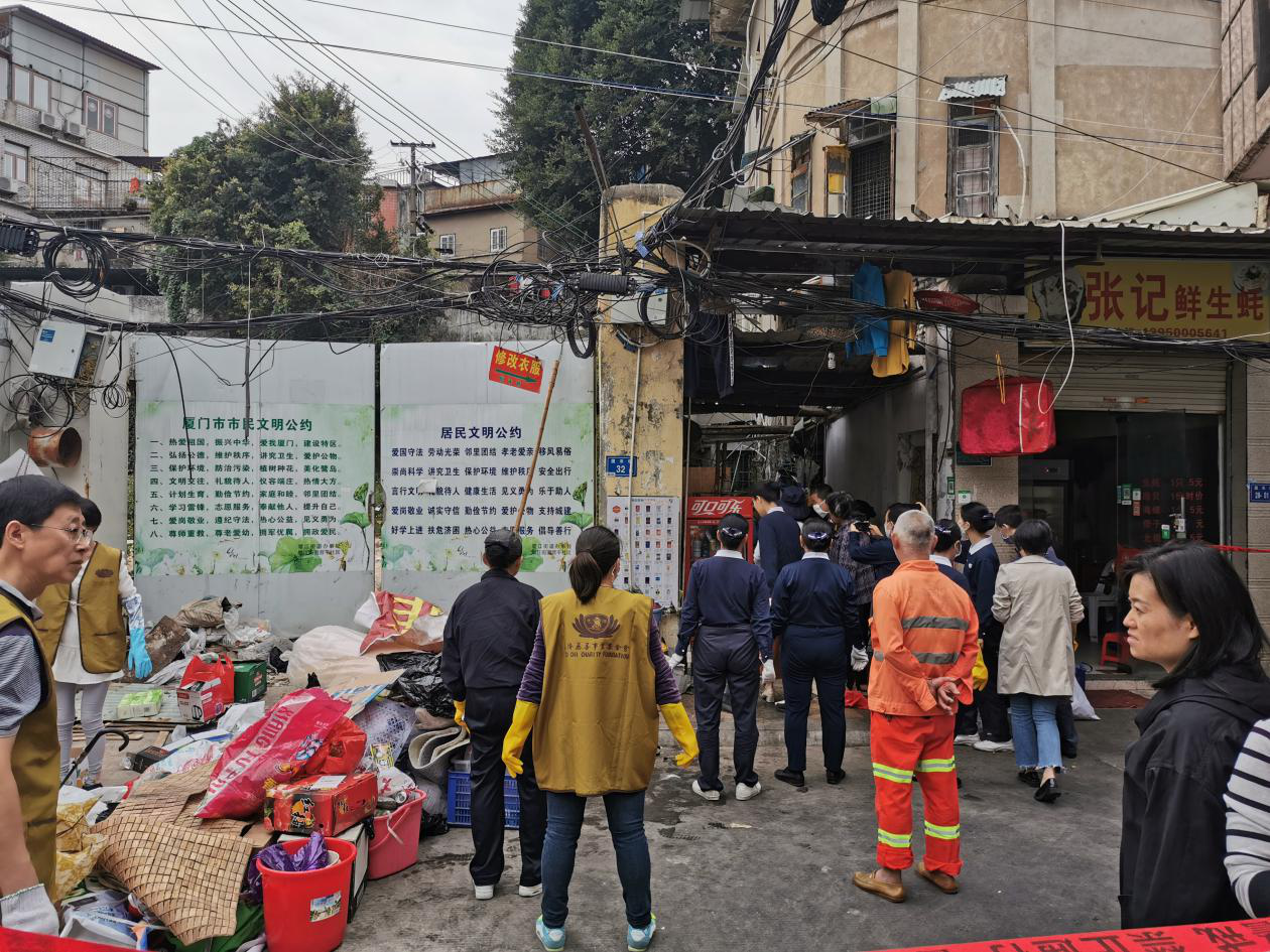 天下之事,有后果必有前因。在這之前,劉阿姨一家的事情可難倒了舊城開(kāi)發(fā)公司和營(yíng)平社區(qū)居委會(huì)。原來(lái),家住廈禾巷32號(hào)公房的劉阿姨有一個(gè)非常難以理解的怪癖,就是喜歡撿廢品,而且自身衛(wèi)生意識(shí)極差,所以撿回來(lái)的廢品堆得到處都是,不僅自己家里的房間客廳堆得沒(méi)有落腳的地方,還把廢品堆到了公共走廊;舊城開(kāi)發(fā)公司和居委會(huì)的工作人員數(shù)次為劉阿姨清理門(mén)戶(hù),但每次清理完門(mén)口走廊的雜物,不久之后又會(huì)被我行我素的劉阿姨堆滿(mǎn)。由于家里堆滿(mǎn)了雜物,劉阿姨的女兒甚至有家回不得,每天只能等隔壁小店關(guān)門(mén)后借住在里面。