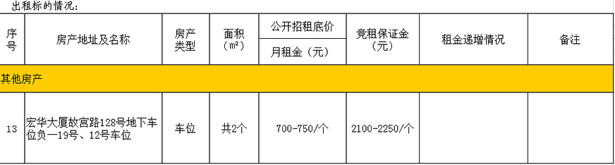 | 1、租賃現(xiàn)狀:按現(xiàn)狀出租,原承租戶在同等條件下?lián)碛袃?yōu)先承租權(quán)(具體規(guī)定詳見招租規(guī)則); 2、競(jìng)租保證金繳交截止日期(即報(bào)名參與競(jìng)租截止時(shí)間): 截至2020年7月16日17:00(以我司到賬時(shí)間為準(zhǔn)); 3、競(jìng)租報(bào)名開始時(shí)間:2020年7月7日8:00起; 4、競(jìng)租報(bào)名截止時(shí)間:2020年7月16日17:00止; 5、提交報(bào)價(jià)及公布報(bào)價(jià)時(shí)間(競(jìng)租):2020年7月17日上午9:00至10:00止(各競(jìng)租人當(dāng)天具體提交報(bào)價(jià)材料的開始及截止時(shí)間以招租人根據(jù)現(xiàn)場(chǎng)招租場(chǎng)地先后順序安排確定); 6、提交報(bào)價(jià)及公布報(bào)價(jià)地點(diǎn):廈門市思明區(qū)觀音山國際商務(wù)營運(yùn)中心2號(hào)樓2層2號(hào)會(huì)議室; 7、聯(lián)系人及電話: 陳先生:13799275046 備注:意向承租人對(duì)上述情況應(yīng)有充分了解。詳細(xì)招租規(guī)則、房屋租賃合同樣本、承諾函、報(bào)價(jià)單等招租文件于報(bào)名參加時(shí)領(lǐng)取。 | |||||||