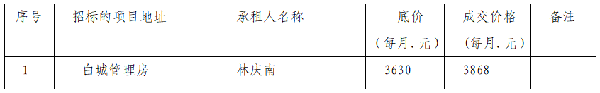 白城管理房公開(kāi)中標(biāo)公示