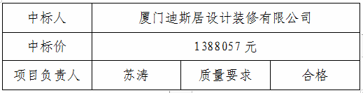 招標項目編號為“(HCBY2021039萬豐青少年教育基地禮堂裝修工程”的招標,招標人根據(jù)評標委員會推薦的中標候選人確定本項目中標人,于2021年03月26日至2021年03月29日止進行公示,中標人的中標情況公布如下: