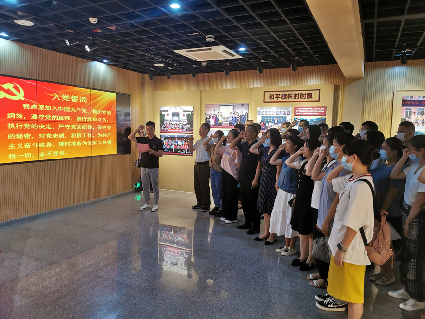 最后,集體黨員面對(duì)莊嚴(yán)肅穆的黨旗,握緊拳頭舉過頭頂莊嚴(yán)宣誓,讓我們又找到了一種蓄勢待發(fā)、激情投入的力量,真誠做人、立足崗位、履行職責(zé)、廉潔自律。
