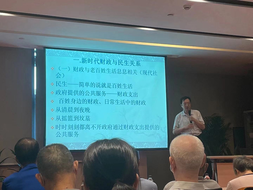 宣誓結(jié)束,來自廈門大學(xué)經(jīng)濟(jì)學(xué)院財(cái)政系教授劉曄為黨員們講授黨課《現(xiàn)代財(cái)政制度與新時(shí)代民生福祉》。劉教授的報(bào)告以習(xí)近平總書記對(duì)現(xiàn)代財(cái)政制度、民生福祉的重要論述為主要依據(jù),結(jié)合黨的十九大報(bào)告基本精神,通過“財(cái)政與民生”這一視角,說明財(cái)政是民生福祉的保障和主要依托,是國家治理的基礎(chǔ)和重要支柱。以民生福祉為中心,補(bǔ)足“民生短板”,加快建立現(xiàn)代財(cái)政制度,是我黨百年財(cái)政思想與實(shí)踐的重要課題。黨員干部只有始終將為人民群眾謀福利作為奮斗目標(biāo),把改善民生福祉落到實(shí)處,讓群眾共享新時(shí)代的發(fā)展成果,提高人民幸福感、獲得感,國家就能日益繁榮昌盛。劉教授的報(bào)告使大家對(duì)我們黨“發(fā)展為了人民、發(fā)展依靠人民,發(fā)展成果由人民共享”即“以人民為中心”的發(fā)展思想有了更加深刻的理解和認(rèn)識(shí)。