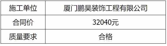 根據(jù)招投標(biāo)管理辦法、思明控股辦[2021]14號(hào)文《采購招標(biāo)管理辦法》的相關(guān)規(guī)定,我司負(fù)責(zé)龍山文創(chuàng)園園區(qū)墻面修補(bǔ)、粉刷及廣告牌噴漆等提升改造工程直接發(fā)包廈門鵬昊裝飾工程有限公司實(shí)施,現(xiàn)通過思明控股網(wǎng)站于2021年12月27日至2021年12月30日進(jìn)行成交結(jié)果公示,內(nèi)容如下: