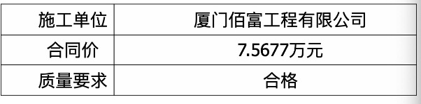 根據(jù)招投標管理辦法、思明控股辦[2021]14號文《采購招標管理辦法》的相關規(guī)定,我司委托廈門佰富工程有限公司實施嘉蓮商務中心一期辦公樓8樓公共部分修整工程,現(xiàn)通過思明控股網(wǎng)站進行成交結(jié)果公示,內(nèi)容如下: