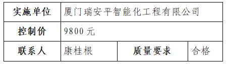 根據(jù)相關(guān)規(guī)定,我司負(fù)責(zé)采購(gòu)的園區(qū)服務(wù)中心觸控一體機(jī)直接發(fā)包廈門(mén)瑞安平智能化工程有限公司實(shí)施,現(xiàn)于2022年1月14日至2022年1月18日對(duì)外發(fā)布結(jié)果公告,內(nèi)容如下: