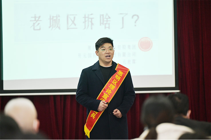 專家解讀部分,區(qū)委宣講團成員、廈門理工學院洪認清教授以《牢記囑托、勇毅前行,建設更加美麗富裕繁榮平安的幸福思明》為題,結合省、市、區(qū)黨代會精神和習近平總書記致廈門經濟特區(qū)建設40周年的賀信等內容,從政治、經濟、文化等多角度深刻剖析了思明區(qū)在省、市發(fā)展大局中的重要地位,鼓勵大家要牢記總書記囑托,奮力譜寫新華章。