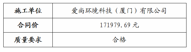 根據(jù)招投標(biāo)管理辦法、思明控股辦[2021]14號(hào)文《采購(gòu)招標(biāo)管理辦法》的相關(guān)規(guī)定,我司負(fù)責(zé)的思明區(qū)青少年綜合實(shí)踐基地A1地塊充電樁施工工程項(xiàng)目直接委托愛(ài)尚環(huán)境科技(廈門(mén))有限公司施工,現(xiàn)通過(guò)思明控股網(wǎng)站于2022年01月19日至2022年01月21日進(jìn)行成交結(jié)果公告,內(nèi)容如下: