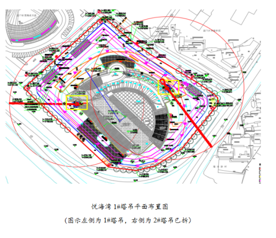1、請(qǐng)告知現(xiàn)場(chǎng)塔樓施工塔吊的型號(hào)、拆除時(shí)間、端部最大吊裝能力及平面布置圖。