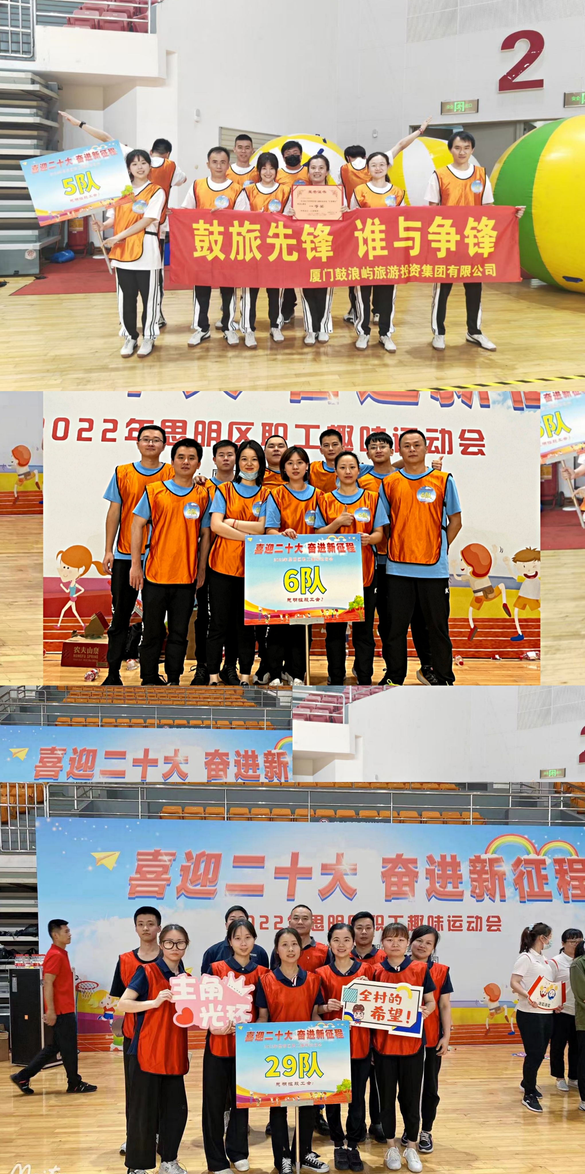 為增強干部職工的拼搏精神和凝聚力,5月14日上午思明控股工會組織30名職工分3支隊伍,參與“喜迎二十大,奮進新征程”思明區(qū)職工趣味運動會。本次趣味運動會共設置了“眾志成城”“繼往開來”“只爭朝夕”“一鼓作氣”四個比賽項目,每個項目設立一、二、三等獎三個等次。全區(qū)共160個代表隊1600人參加。