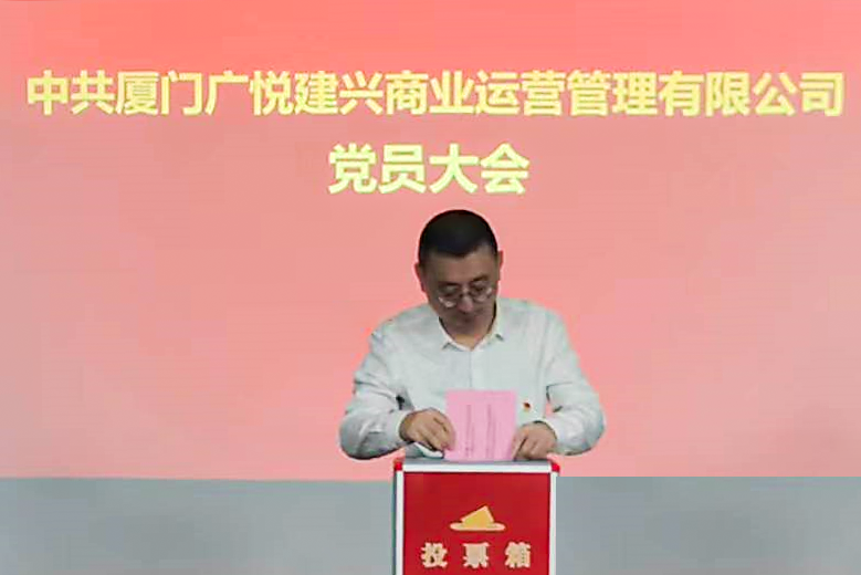 會(huì)議在莊嚴(yán)的國歌聲中開始,思明控股黨委辦公室主任傅雅琳宣讀了《關(guān)于同意成立中共廈門廣悅建興商業(yè)運(yùn)營(yíng)管理有限公司支部委員會(huì)的批復(fù)》。會(huì)議以無記名投票、差額選舉的方式,選舉產(chǎn)生廣悅建興黨支部第一屆支委會(huì)委員。隨后,在第一次支委會(huì)上選舉并分工,黃海同志任廣悅建興黨支部書記、顏海聰同志任副書記,王小銘同志任組織委員兼紀(jì)檢委員。