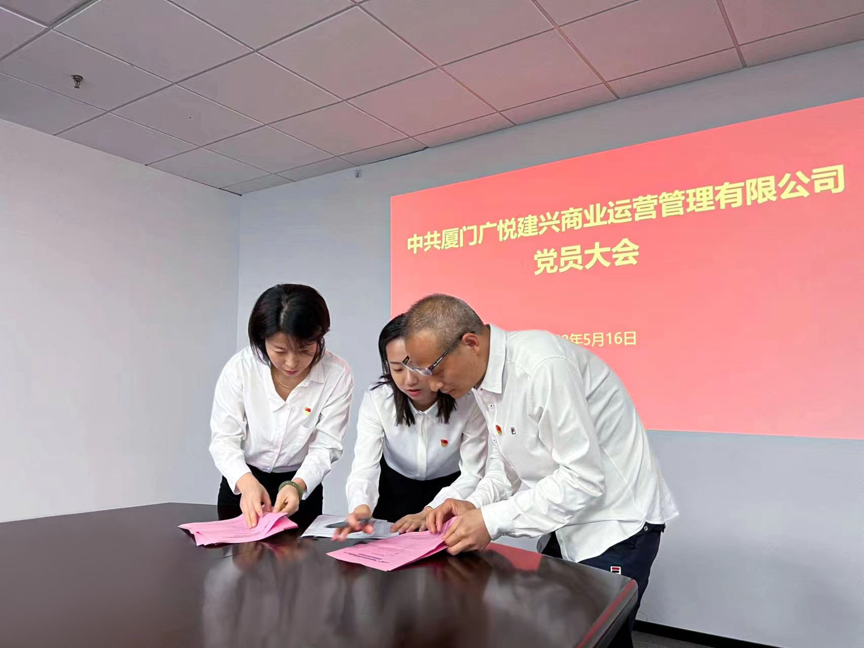 2022年5月16日,廈門廣悅建興商業(yè)運(yùn)營(yíng)管理有限公司在國際銀行大廈27樓會(huì)議室召開第一次黨員大會(huì),思明控股黨委辦公室兩名代表列席會(huì)議。會(huì)議由廣悅建興常務(wù)副總經(jīng)理顏海聰主持,參加會(huì)議的還有公司10名黨員。