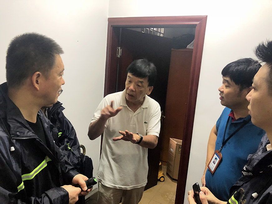 公司領(lǐng)導(dǎo)與工作人員入戶排查地勢(shì)低洼地帶房屋