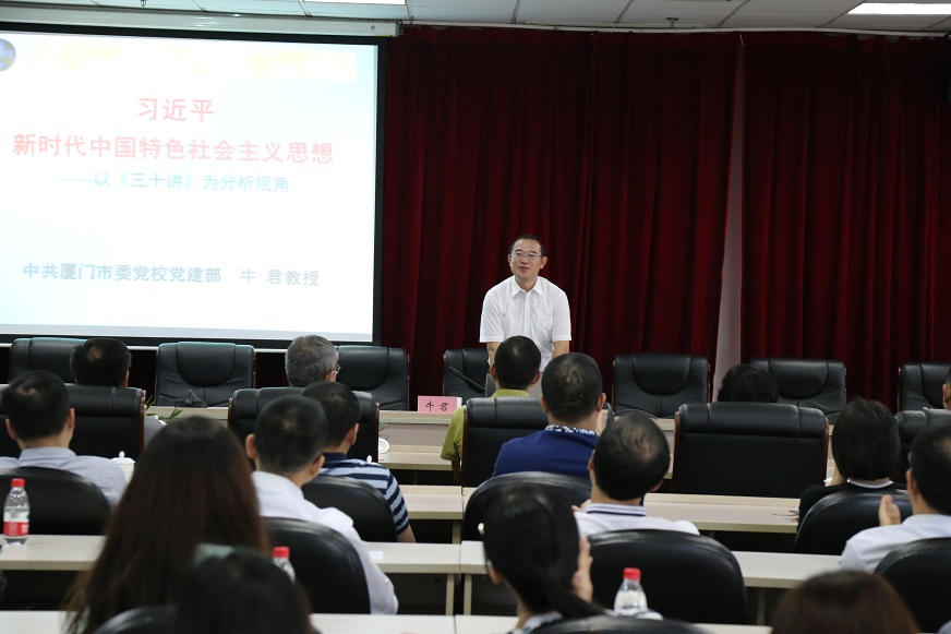 為進一步把學(xué)習(xí)宣傳貫徹習(xí)近平新時代中國特色社會主義思想引向深入,在思明控股集團持續(xù)興起“大學(xué)習(xí)”“大宣講”熱潮,11月9日下午,思明控股集團黨委邀請廈門市委黨校黨建教研部副主任、教授牛君作“習(xí)近平新時代中國特色社會主義思想——以《三十講》為分析視角”專題黨課。思明控股集團領(lǐng)導(dǎo)班子、所屬一級子公司中層副職(含所屬二級子公司副職)以上人員及全體在廈黨員共170余人參加了學(xué)習(xí)。