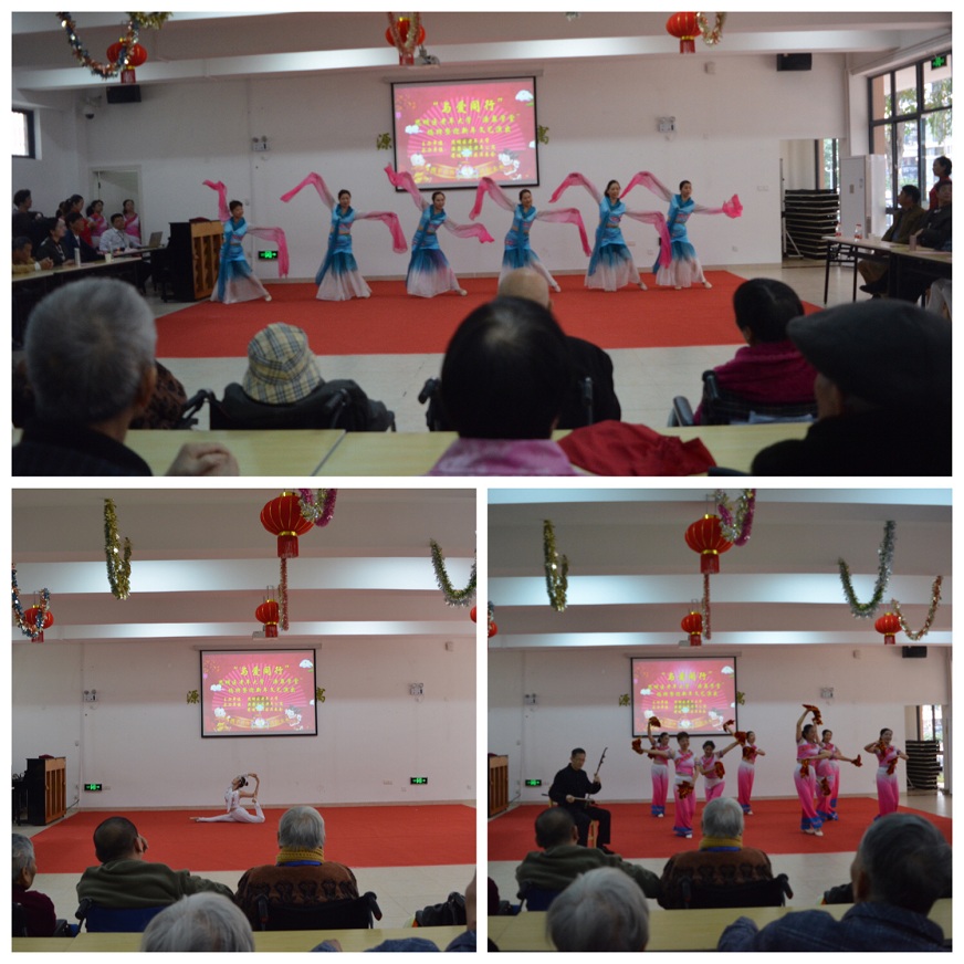 揭牌儀式結(jié)束后,思明區(qū)老年大學(xué)還為老年公寓長(zhǎng)者們帶來(lái)了一臺(tái)精彩的“與愛(ài)同行”的慰問(wèn)文藝演出,為揭牌儀式更增添了一縷喜慶光彩。先由思明區(qū)老年大學(xué)樂(lè)隊(duì)《器樂(lè)連奏》打頭陣,薩克斯、二胡共同演奏的旋律音色非常有特點(diǎn),歡快而又動(dòng)情的演奏感染著現(xiàn)場(chǎng)觀眾;之后由思明區(qū)老年大學(xué)合唱隊(duì)男女聲二重唱《我愛(ài)你中華》、《小橋》,氣勢(shì)磅礴的氣勢(shì),震撼全場(chǎng);六十余歲舞者表演的《舞韻瑜伽》,柔軟的身體優(yōu)雅地呈現(xiàn)各式高難度體形,使得在場(chǎng)的長(zhǎng)者們個(gè)個(gè)驚嘆不已,掌聲連連,一度將現(xiàn)場(chǎng)氣氛推至高潮,全場(chǎng)觀眾的熱情度在愉悅的氛圍中不斷升溫。